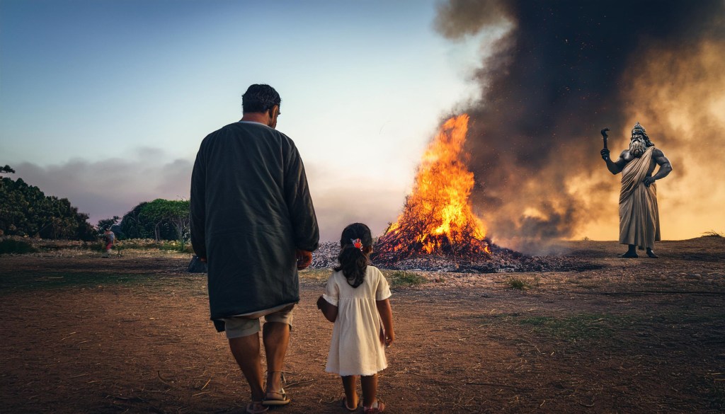 “In the story, which likely has a factual basis in some tradition, Jephthah made a vow,” Christian said. “Jephthah fulfilled that vow. That’s what we know. Was it a rash vow? From a Christian perspective, that’s the lesson. The lesson hits harder with Jephthah’s daughter dying. Serving God as a nun, as you put it, is indeed a sacrifice, but not one powerful enough to warrant four days of commemoration. I think the people who recorded this story understood that Jephthah sacrificed his daughter on a bonfire. That’s what I believe, but what do you think, Cole?”